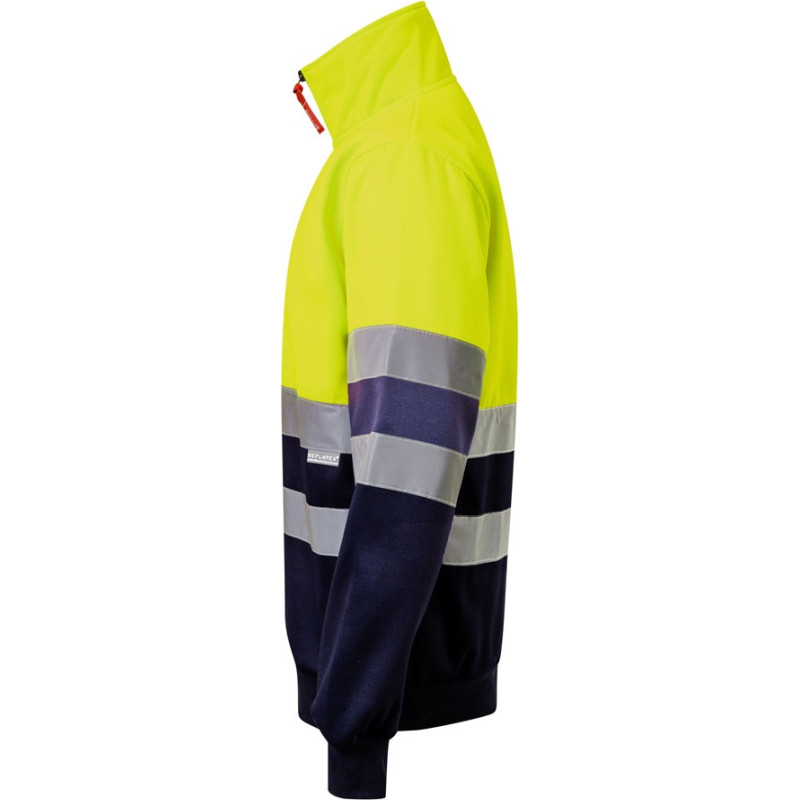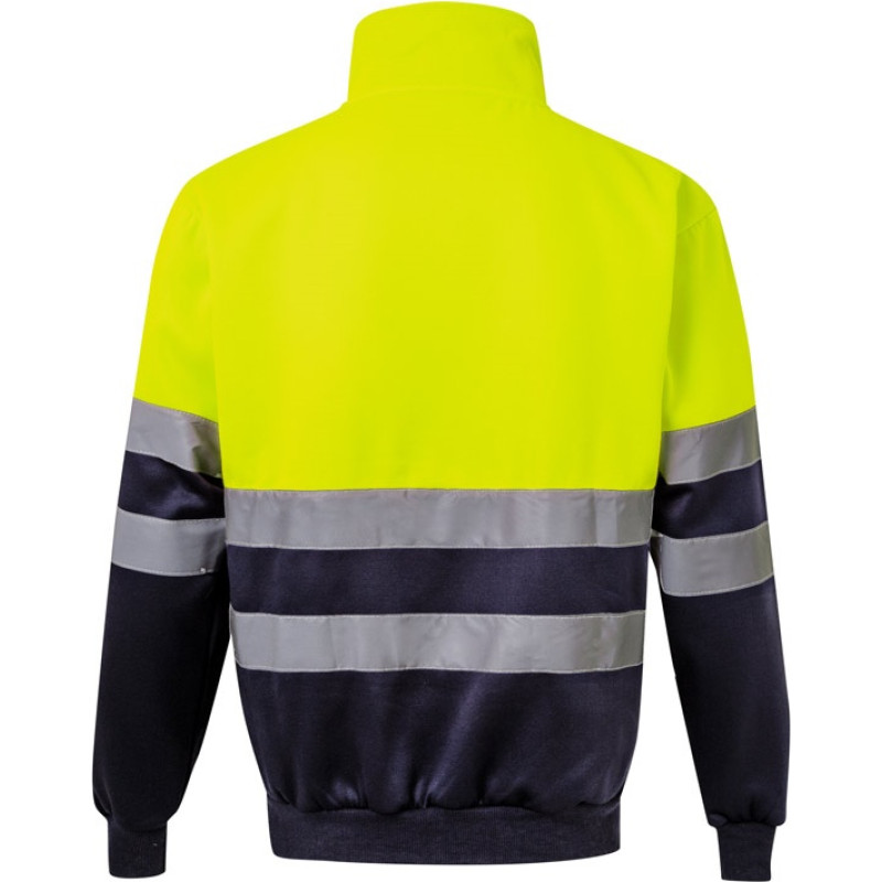 Two-tone sweatshirt (300g/m²) in polyester fleece (100%). With high collar and half zip. Ribbed cuffs and hem. Reflective stripes on the torso and sleeves. Product in compliance with EU Reg. 2016/425, certified by EN20471 and class Nº 1. Size: 4XL,5XL