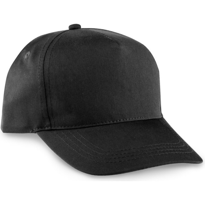 Recycled polyester cap (100% rPET) with 5 panels and eyelets for ventilation (210 g/m²). Adjustable with adhesive zip. Size: 580 mm