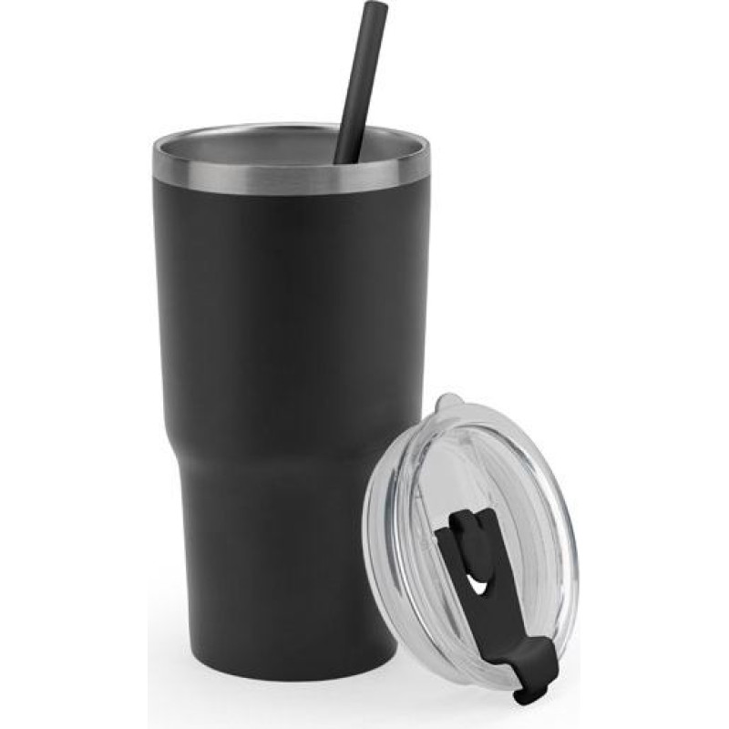 Compact, easy-to-use travel cup for your trips and outdoor activities. Made from stainless steel (91% rSS), it has a vacuum-insulated double wall and a matt finish. This cup can be used in two ways: through its straw opening (included) or through the hole for direct use (can be covered). Capacity up to 600 mL. Supplied in a kraft paper gift box. ø86 x 168 mm (without straw) | Straw: 205 mm