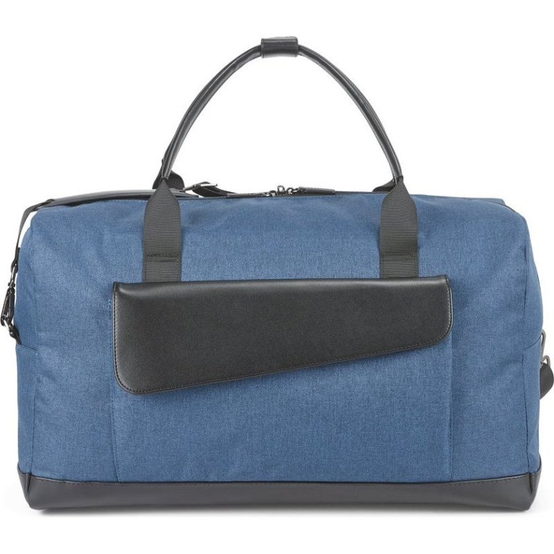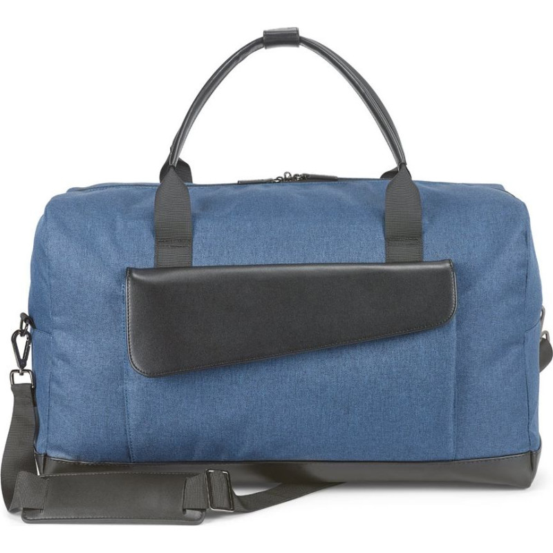 Practical and stylish travel bag in cationic 600D and high quality poly-fleece. The spacious main compartment is ideal for storing clothes and other necessities for short journeys. It also has four inside pockets and a front pocket with an asymmetrical flap. It has a space for a name tag, metal feet to protect the bag when it's set down, a zip design that can be controlled with a padlock (not included) and handles that are designed to be adjustable and comfortable. Capacity up to 32 litres. Supplied in a non-woven bag. Product includes Quality Test Report. Motion Bag: 500 x 300 x 250 mm | Bag: 700 x 450 x 75 mm