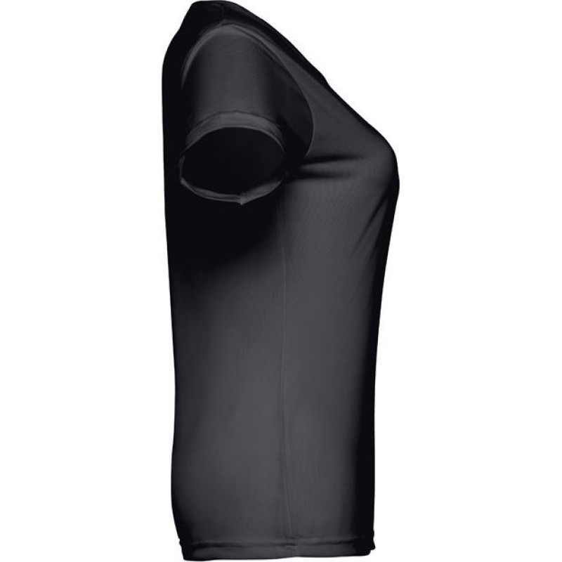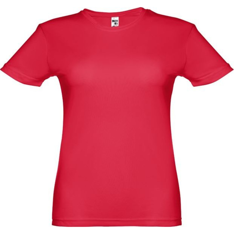Technical slightly fitted T-shirt with short sleeves for women in 100% polyester jersey knit (130 g/m²). Regular fit, with comfortable and breathable fabric. Reinforced collar with jersey and double stitched sleeves and hemline Sizes: S, M, L, XL, XXL