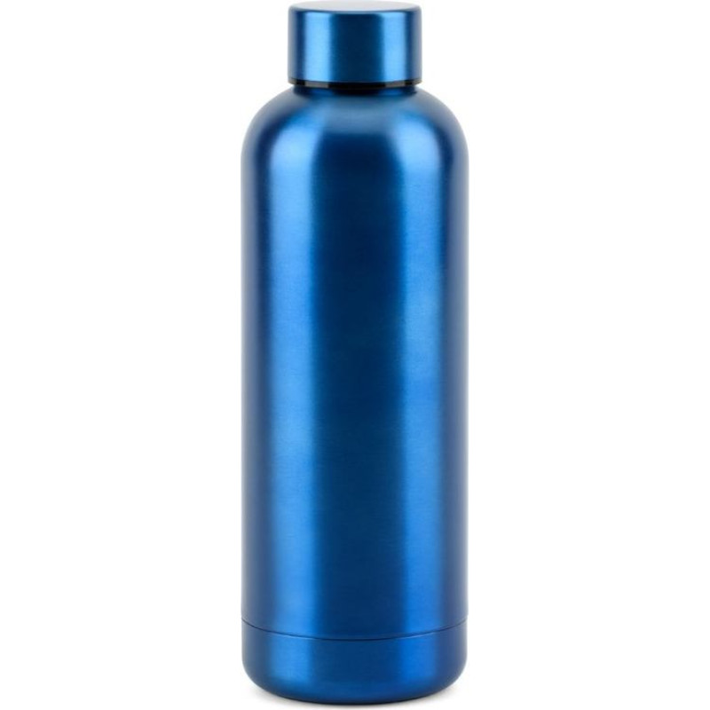 Stainless steel bottle (90% recycled) with stainless steel cap. Metallic finish (except in the color white) and vacuum-insulated double wall. Capacity up to 550 mL. Supplied in a kraft paper gift box. ø73 x 222 mm